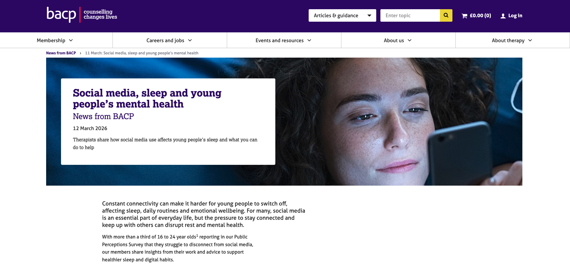 The article explores the impact of social media on young people’s mental health, particularly its effects on sleep, daily routines, and emotional wellbeing. It highlights how constant connectivity and the pressure to stay online can make it difficult for young people to switch off and rest.